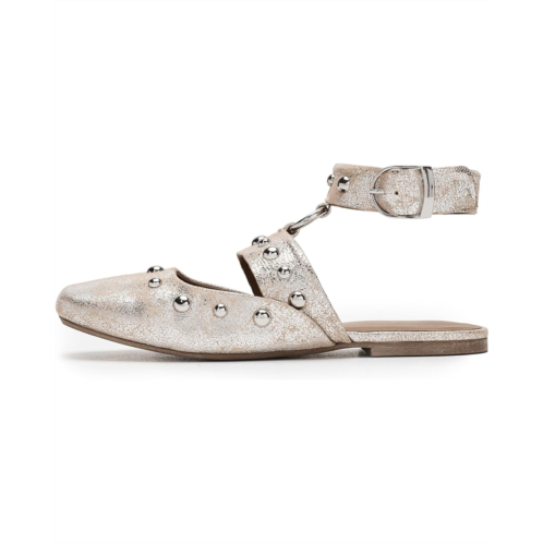 - Give a chic update to your classic, casual style wearing Free People Camille Mystic O-ring Flats. The squared-toe sandals are designed with a suede upper with studded details, an O-ring embellishment, and an adjustable buckle closure.