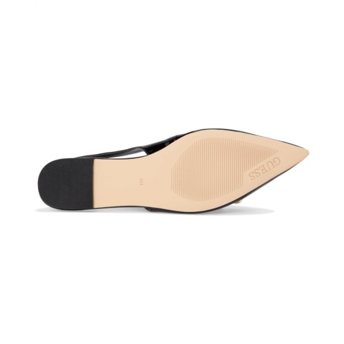 - The Guess Daisee offers a simple slingback silhouette with a trendy twist. Decorated with a chain detailing across the front toe featuring adorable Guess shoe charms. Crafted from rubber upper, and synthetic rubber lining, it features pointed toe, buckle closure, low-top silhouette, and flat heel design.