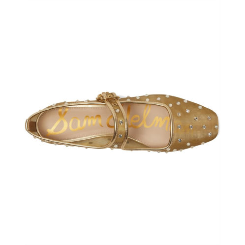 - Strut into the party spotlight wearing the lightweight Sam Edelman Michaela Shine Flats. The rhinestone-embellished footwear features mesh upper with midway buckled strap closure and low-top, square toe silhouette.