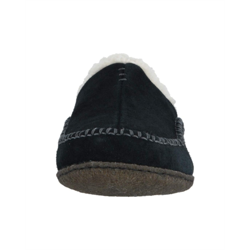 - Warm slippers in with a soft suede upper and moc stitch detailing.