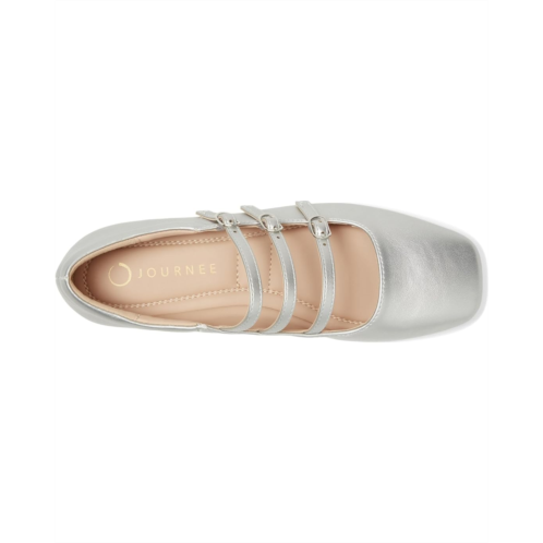 - The Journee Collection Darlin mary jane flat features a stylish and comfortable design with a flat sole, making it a versatile choice for everyday wear. The multi-strap detailing with a buckle closure adds a trendy touch, enhancing the square toe style and providing a secure fit. Crafted with faux leather upper and polyurethane footbed, the footwear prioritizes both fashion and comfort.