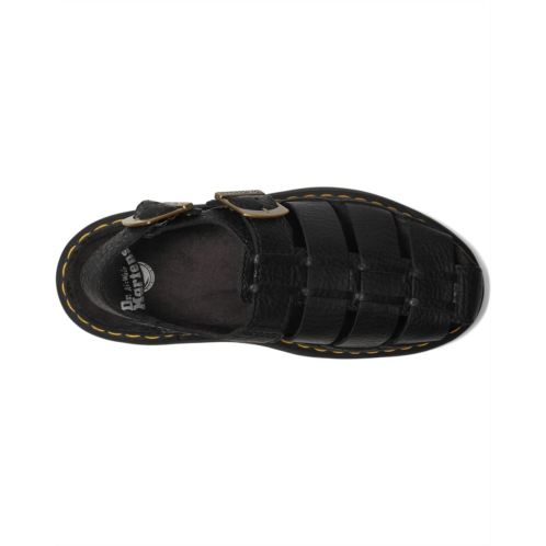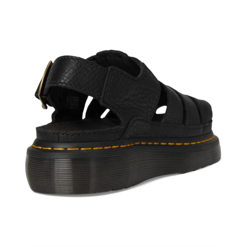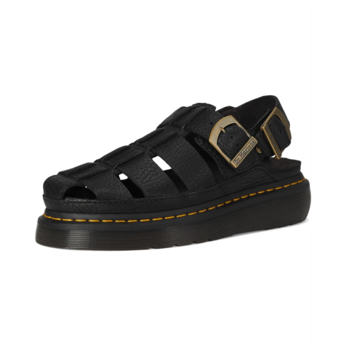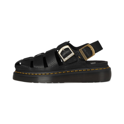 - These Dr. Martens Archive Fisherman sandals revive warm-weather-infused nostalgia with the attitude, timelessness, and versatility of the Dr. Martens 90s fisherman. This new edition is stacked on a stacked Quad Shore sole to stand out as much as always. Detailed with an antique gold branded buckle and DM's rivets, they have yellow welt stitching to reinforce the DM's DNA. Crafted from leather upper. suede lining, leather insole, and adjustable strap with buckle closure.