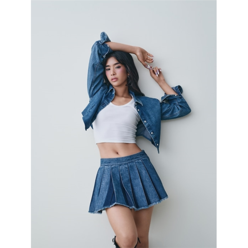- Responsibly Made: This denim skirt is part of our water-saving Washwell program. Compared with conventional wash methods, Washwell uses at least 20% less water.