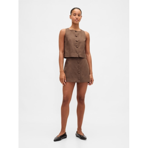 [US] Gap Linen-Blend Button-Front Mini Skort