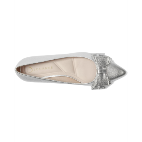 - The Journee Collection Ophelia shoes combine style and comfort with their sleek design and practical features. Crafted with a faux leather upper, these flats boast a pointed toe design and versatile block heels. The slip-on closure, bow detail, polyester lining, and Tru Comfort foam footbed make these slip-on shoes a chic and comfortable choice for everyday wear.