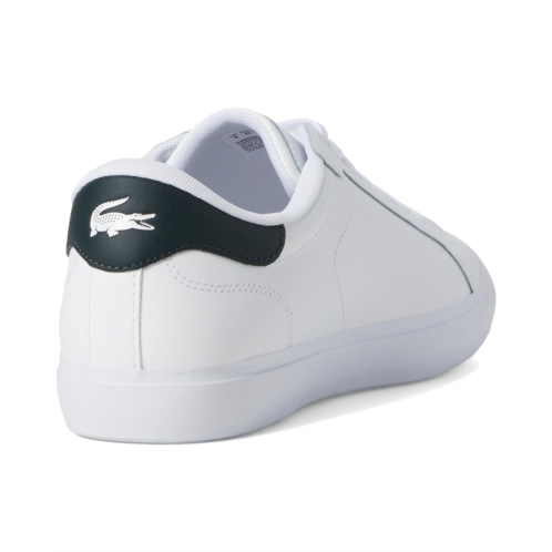 - The Lacoste Powercourt Snekaers, a modern lace-up sneaker with versatile charm. A sleek, modern design that pairs perfectly with both casual and smart-casual looks. Made with high-quality materials for lasting durability and everyday comfort. Leather uppers boast a flat, burnished finish, complemented by contrasting crocodile for an urban edge. Featuring round toe, lace-up closure, signature brand logo for a refined touch.