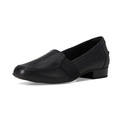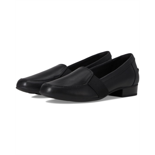 - The Clarks Juliet Beat is a refined loafer that blends effortless style with smart-casual versatility. Designed with a squared round toe, stack-effect low block heel, and smooth vamp detailing, it delivers a polished silhouette that transitions seamlessly from workdays to weekend wear. The easy slip-on profile is complemented by a smooth textile lining and Ultimate Comfort footbed, while the flexible thermoplastic rubber outsole ensures dependable traction with every step.