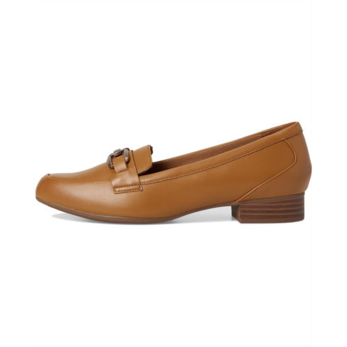 - Classic with a twist, Clarks Juliet Echo. Designed in premium tan leather with chic horsebit hardware across the vamp, this slip-on loafer instantly elevates your smart-casual looks for every season. Crafted with Clarks' signature Ultimate Comfort foam footbed, it cushions and supports your feet with every step, making long days feel effortlessly easy. A smooth textile sock and polyester lining add a soft, breathable touch, while the durable rubber outsole ensures lasting wear and steady traction. Finished with a sleek stack-effect low block heel, Juliet Echo brings just the right amount of lift without sacrificing comfort.