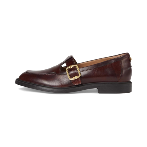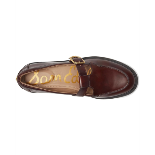 - Meet the Sam Edelman Elaina loafers that feature a T-strap with an oversized buckle detail. The leather upper, faux leather insole, and faux leather lining of these shoes offer superior comfort and durability. Reinvent your style with these leather loafers and play with rich fabrics and shortie socks for extra fun.