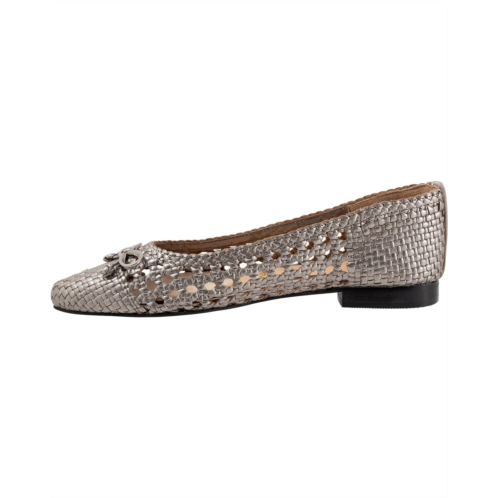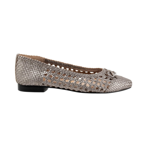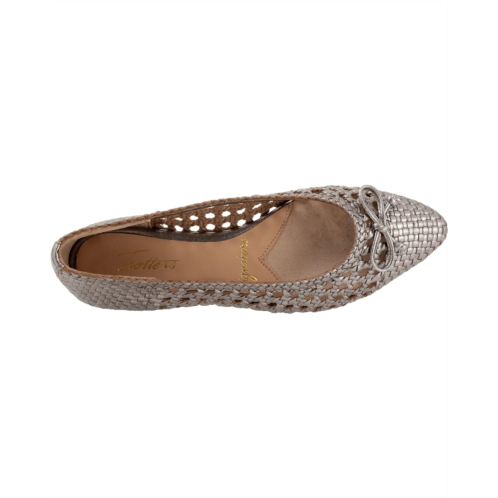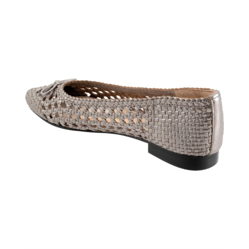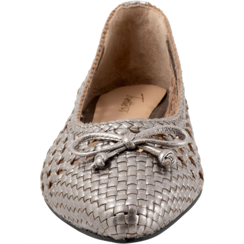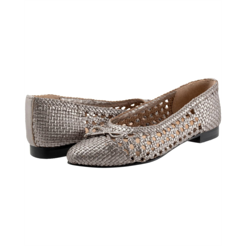 - Style your look in the shiny and woven Trotters Edith flats featuring a low heel for everyday casual look.