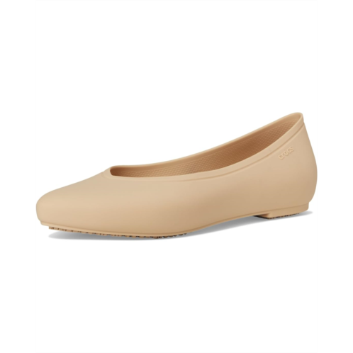 - Your reliable partner for all-day comfort and style, Crocs Work On the Clock Work Flats. Designed with a modern pointed toe and sleek slip-on silhouette, these flats balance professionalism with performance. The lightweight EVA upper is breathable, easy to clean, and built for long shifts. Inside, the premium LiteRide footbed cushions every step, offering plush support where it matters most. With a durable rubber outsole and Crocs Lock slip-resistant tread, you'll stay grounded and confident on a variety of surfaces. Unlined for breathability and molded for a secure fit, these flats work as hard as you do.