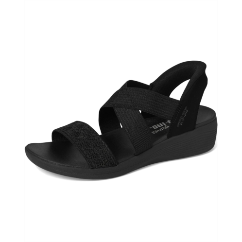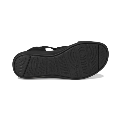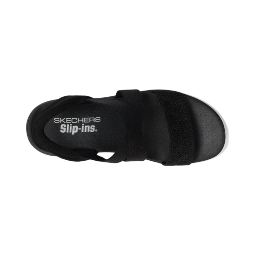 - New heights of comfort arrive in the SKECHERS Arya - Very Demure Hands Free Slip-Ins. These casual vegan sandals feature a stretch cross-strap design and a Luxe Foam comfort foam insole. These heeled sandals are designed with a rubber upper and synthetic rubber lining. The exclusive Heel Pillow holds your foot securely in place while the adjustable ankle strap ensures a secure fit. Walk with comfort and confidence wearing these sandals.