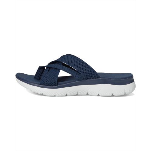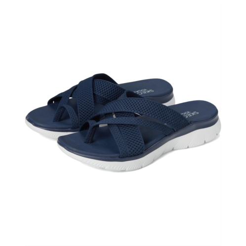 - Enjoy sunny-weather with signature comfort in the SKECHERS Summits - Fantasy Walk. This casual strappy sandal features a vegan leather upper with Skechers Hands Free Slip-Ins and a cushioned Yoga Foam footbed.