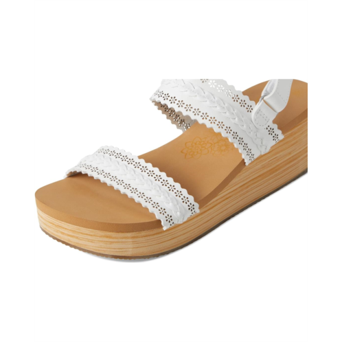 - Spend the weekend in style with no compromise on comfort wearing SKECHERS Summers - Coastal Stroll Sandals. The open-toe vegan sandals are designed with a textured knit upper with a stacked wedge-heeled midsole, synthetic rubber lining, and luxe foam cushioned footbed. The slingback strap ensures a secure fit.
