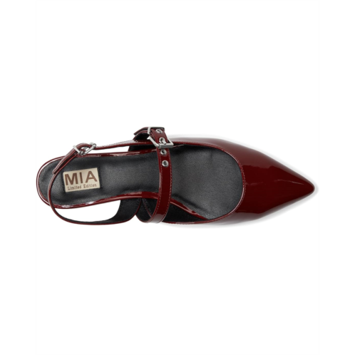 - Stay on trend with this sleek yet sophisticated flat. The MIA MLE-Aree is crafted from patent material available in a fun metallic or basic fall hues. The pointy toe adds a refined touch, while the slingback silhouette and delicate adjustable buckle offers a comfortable fit. Perfect for dressing up your work wear or adding polish to an evening look.