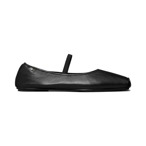 - Visualizing a contemporary take on the classic profile, the Tory Burch Mary Jane Ballets are thoughtfully constructed with a leather and nylon upper, a leather lining, and a cushioned insole. The shoes are lightweight and come with an elasticized instep strap for a secure fit. The contrasting color accent on the square toe brings a unique appeal to this footwear.