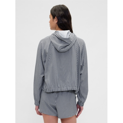 - Breathable, quick-dry, moisture-wicking stretch woven active full-zip hooded jacket. In an oversized fit and slightly cropped length.