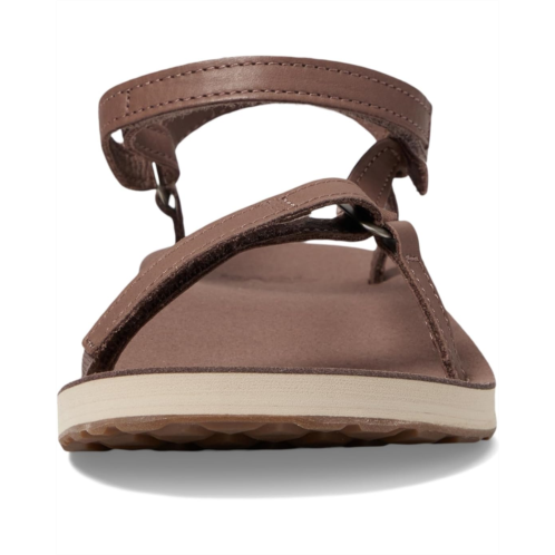- Designed with multiple straps with an adjustable hook-and-loop closure that offers a perfect fit, the Teva Original Universal SliLea sandals are a perfect choice for your outdoor rides and beach trips. The breathable design of these sandals keep your feet cool and comfortable. These strappy sandals are crafted with a leather upper, footbed, and lining that offers superior comfort and durability. Get ready for a comfortable day out by wearing these slip-on sandals.