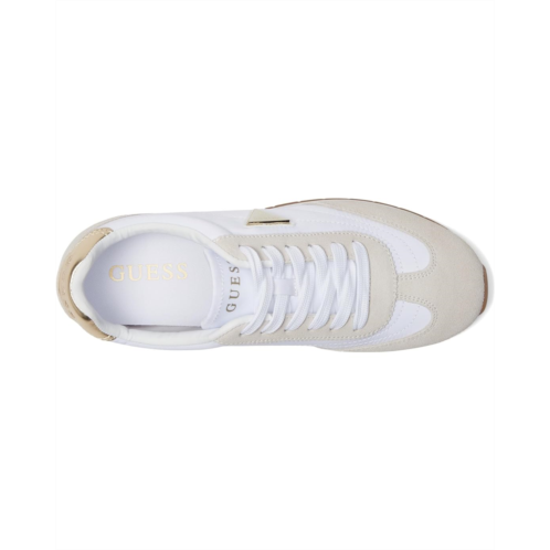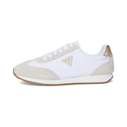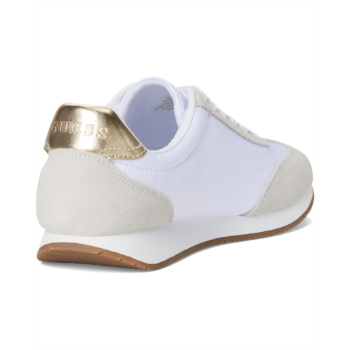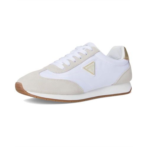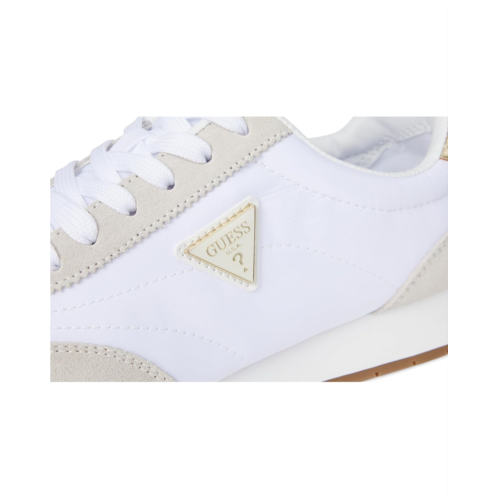 - On trend with a sleek retro look, the GUESS Joggin will keep you fashion forward. Mixed material interest and signature Guess triangle logo make this an eye catcher. With a secure lace-up closure, the sneaker features sueded upper construction and round toe design for a classic look.