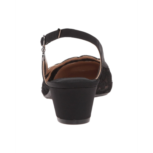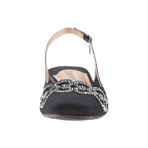 - Slingback strap features a buckle closure at ankle strap.