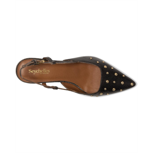 - The Seychelles Crawford Crackle Leather Pump combines just the right amount of edgy with sophisticated. With a pointed toe, kitten heel, and stud details, this slingback pump will demand attention when entering a room.