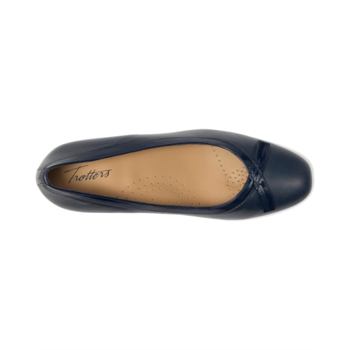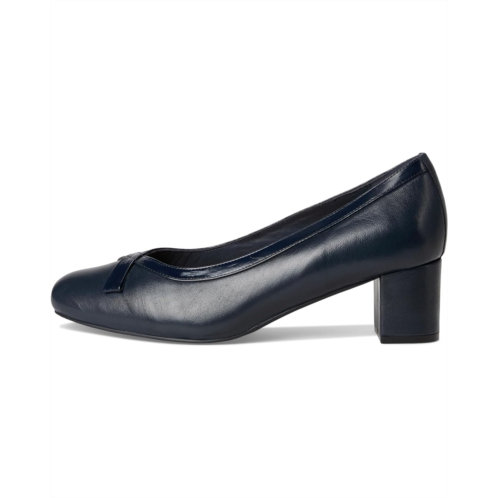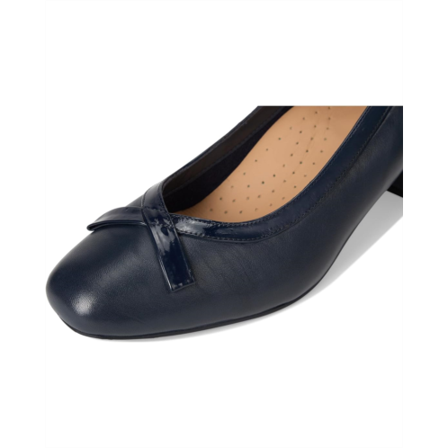 - Elevate your look with the Trotters Devin Pump, where timeless elegance meets modern comfort. Featuring a graceful squared toe with a subtle bow accent, this pump adds a touch of sophistication to any outfit. The sturdy block heel provides just the right amount of lift, while the leather upper and rubber outsole ensure lasting quality and durability. Designed with built-in arch support, the Devin pump keeps you comfortable from your morning meetings to evening events.