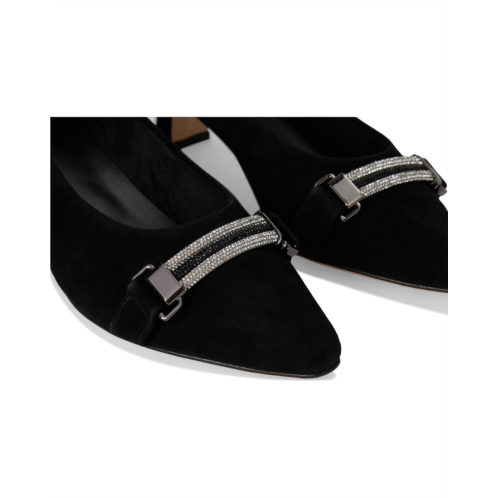 - The Vaneli Torey features a pointed toe and a keeper strap across the vamp, adding a touch of glamor to its sleek silhouette. Crafted with soft suede upper, this mid-top pump offers a padded rubber insole for cushioned support and a kitten heel for a flattering lift without sacrificing wearability.