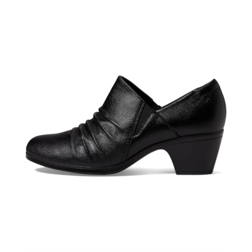 - Exhibit your competitive tendency in the fashion sphere wearing the versatile Clarks Emily 2 Cove Pumps. These slip-ons are designed with ruched leather upper construction and Ultimate Comfort polyurethane (PU) foam cushioning footbed.