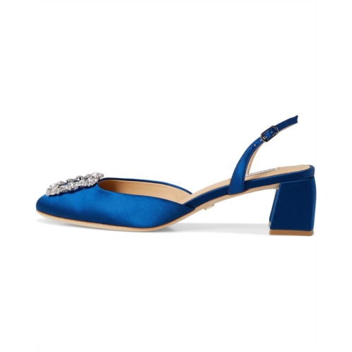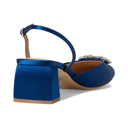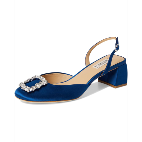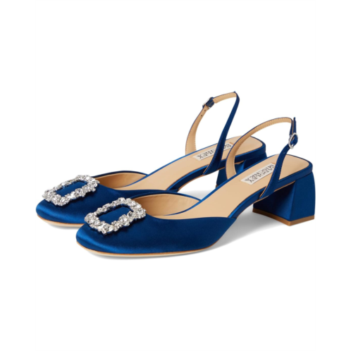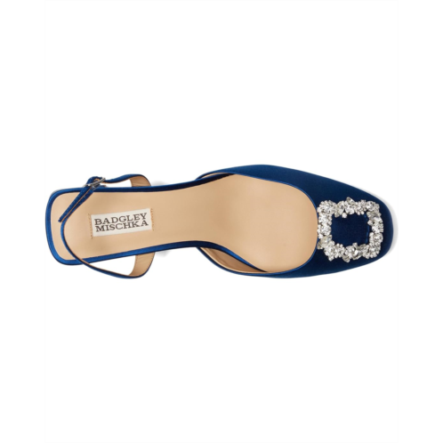 - The Badgley Mischka Vivia is a refined statement sandal designed to dazzle. Crafted with a silk upper, this slingback features a crystal-embellished square toe. The low block heel offers stylish lift without sacrificing comfort, while the buckle adjustable strap ensures a secure fit.