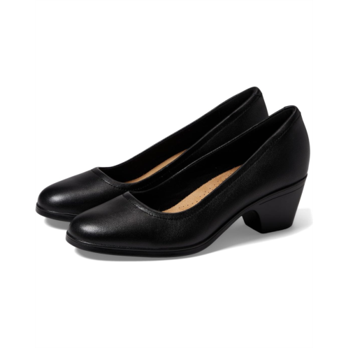 - Try endless styles and experimentation with the all-time classic Clarks Emily 2 Ruby Pumps. These slip-ons have a leather upper construction with Ultimate Comfort PU foam cushioning footbed and featherlight block heels.