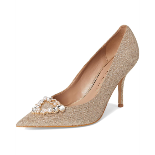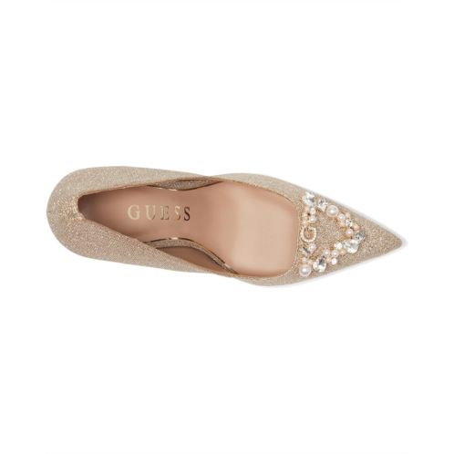 - The GUESS Prinsen pump is anything but ordinary. The beautiful silhouette, rhinestone embellished ornament and stiletto heel features a cushioned leather insole for all-day support and a synthetic rubber flex outsole that moves with you.