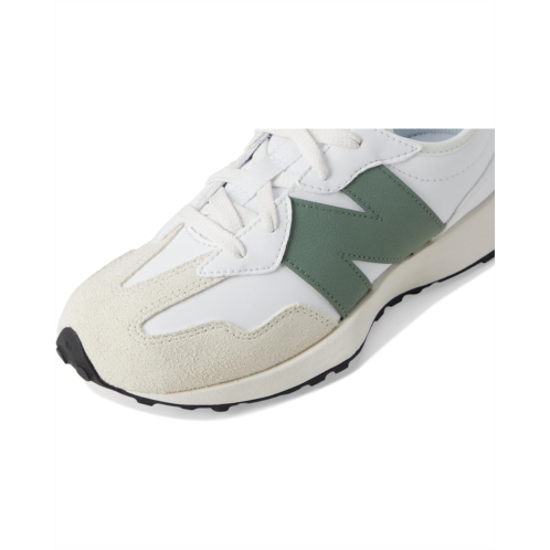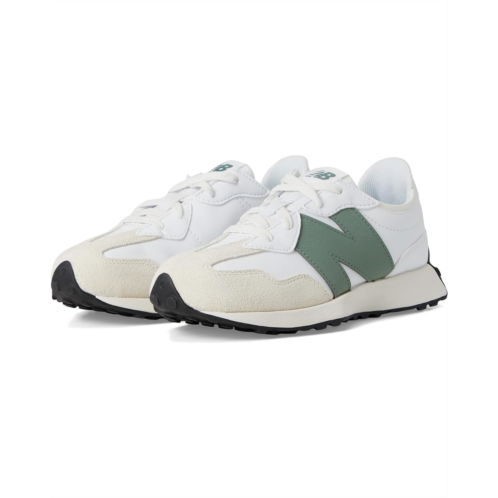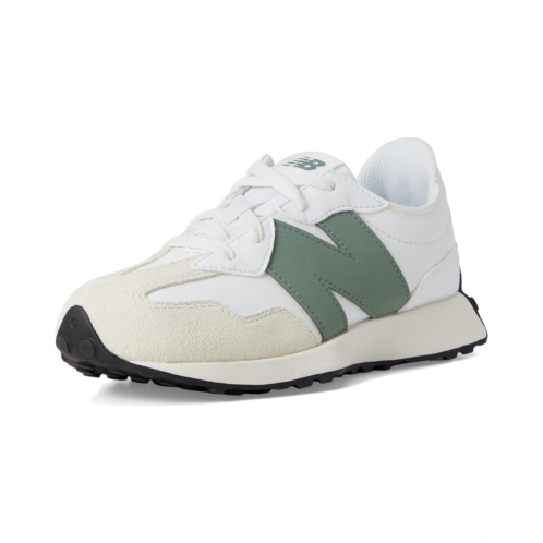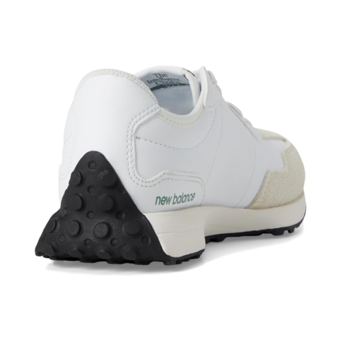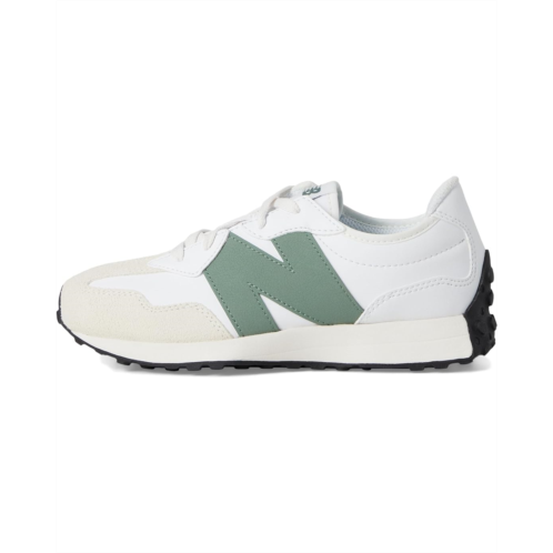 - From the rollout of technological advancements like improved cushioning and specialized outsole construction to the introduction of the iconic 'N' logo, the 1970s were a pivotal time in New Balance's history. The New Balance Kids 327 shoes boldly reimagine the brand's running heritage, with a contemporary-minded reworking of branding, and a wraparound, trail-inspired lug rubber outsole, these lace-up shoes shed new light on the '70s as an era of innovation. They are made of a mesh upper, rubber insole, and cotton lining. The flared midsole and exposed foam tongue add to their comfort.