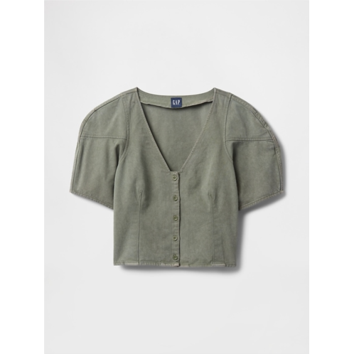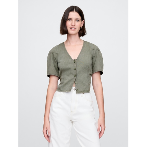 [US] Gap Denim Barrel-Sleeve Crop Shirt