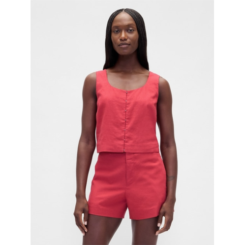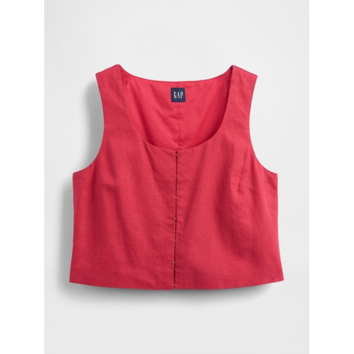 [US] Gap Linen-Blend Hook-Front Crop Shell Top
