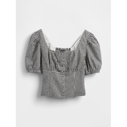 [US] Gap Linen-Blend Puff-Sleeve Crop Corset Top