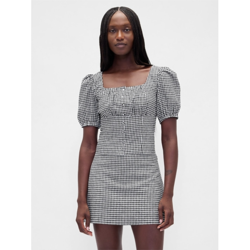 - Shirring at square neck and empire waist.