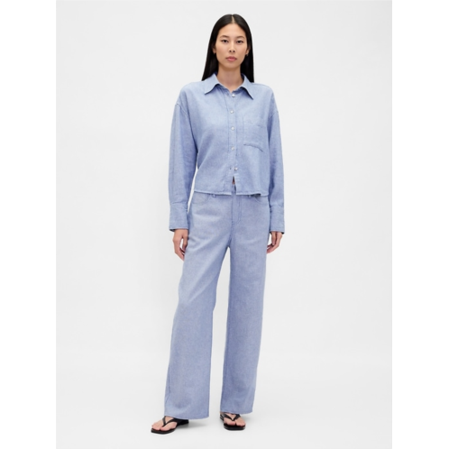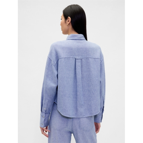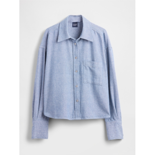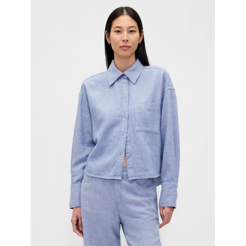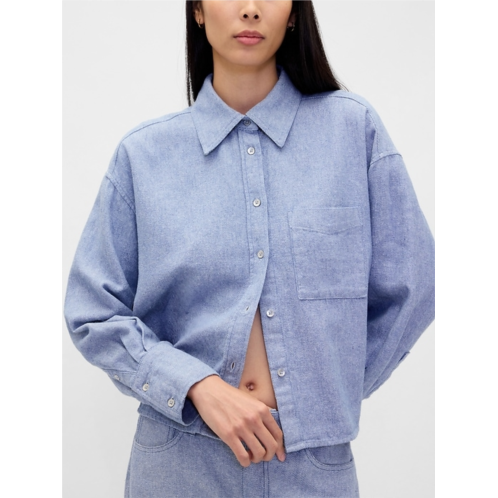 - Soft linen-cotton blend button-down shirt. In an oversized fit and slightly cropped length.