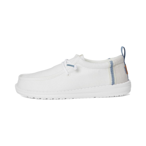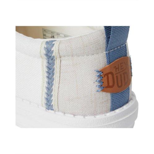- Let your little one go easy on their feet wearing the Hey Dude Kids Wally Summer Linen. Crafted from textile, synthetic upper, cotton lining, and EVA insole, this pair of shoes features round toe, lace detailing, pull-on style, low-top silhouette, flex-and fold style to support healthy feet with its unique shape giving complete freedom of movement. The removable memory foam cushioned insole provides maximum comfort and reduces sweating and odors.
