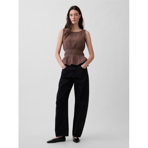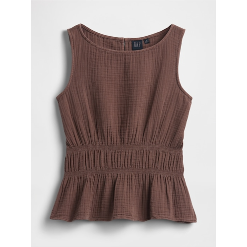 [US] Gap Cotton Gauze Smocked-Waist Peplum Top