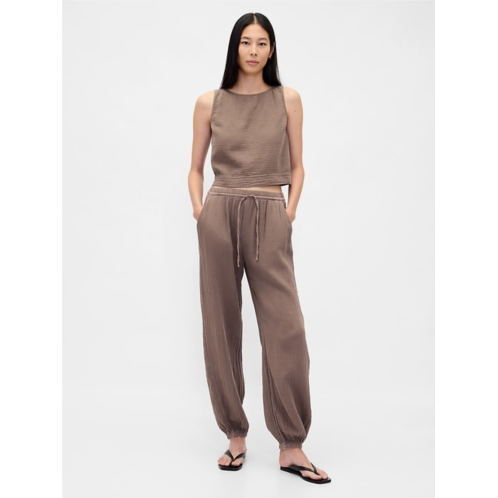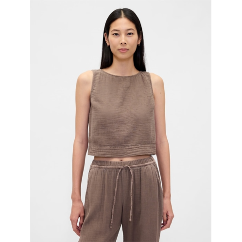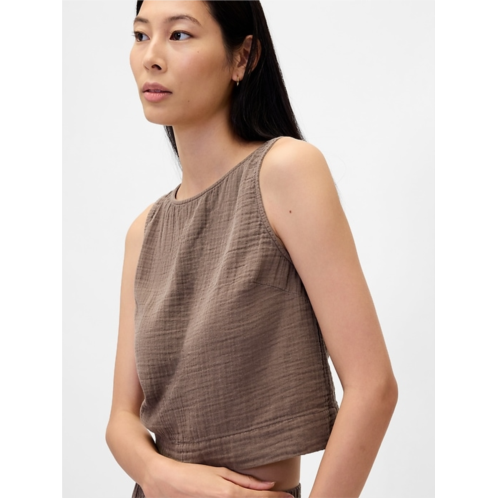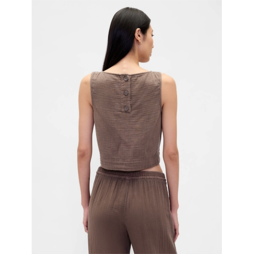- Soft double-weave cotton gauze shell top. In an ultra-cropped length.