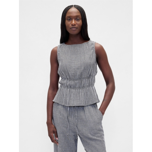 [US] Gap Cotton Gauze Smocked-Waist Peplum Top