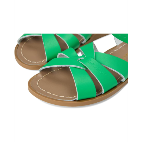 - The Salt Water Sandal by Hoy Shoes Salt Water Original Sandals gives a luxurious feel with a stylish edge to your little one. Crafted from leather upper, lining, and insole, this pair of sandals features open round toe, hand assembled, and stitched straps detailing, ankle strap with rust-proof buckle closure, and brand detailing on the footbed.