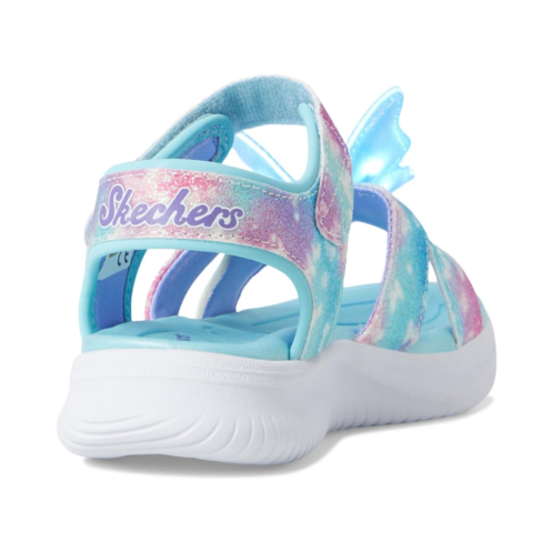 - Watch your little one shine in the SKECHERS KIDS Jumpsters Sandal - Butterfly Brites! Part of the Magical Collection, this dazzling light-up sandal features a dreamy ombre synthetic upper with metallic butterfly print details that sparkle with every step. The adjustable hook-and-loop strap ensures a snug, secure fit, while the cushioned EVA insole keeps tiny feet comfy all day. A durable PU outsole provides sturdy traction for endless adventures.