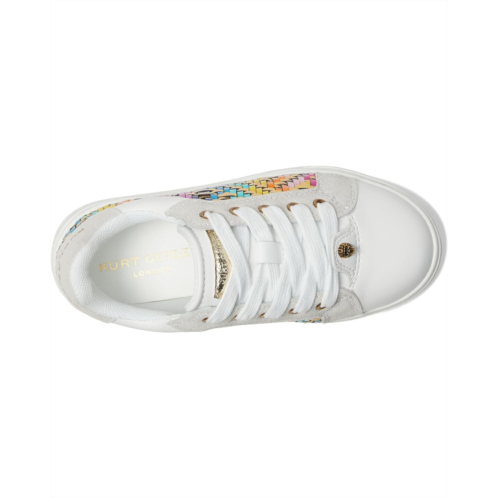 - Let your little one step out with comfort and flaunt a cute vibe wearing Kurt Geiger London Kids Mini Kensington Cupsole Sneakers. The low-top sneakers are designed with a leather upper with a multicolored metallic pattern on the side panels, polyester lining, and a faux leather insole. The lace-up closure ensures a secure fit on the go.