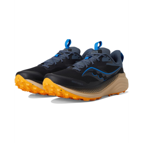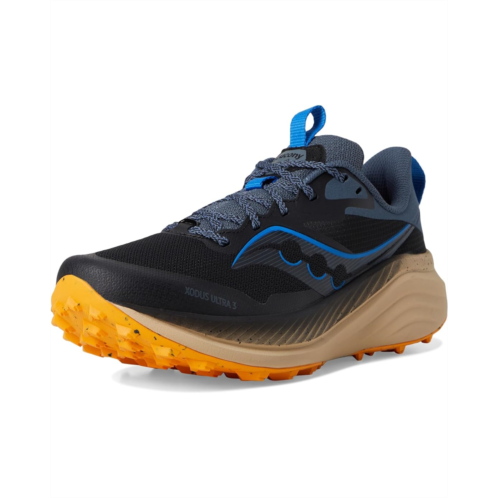 - Conquer the trails sporting Saucony Xodus Ultra 3! Elevate your outdoor adventures with this ultimate blend of comfort and performance. Featuring a durable, breathable mesh upper that wicks moisture away, you'll stay cool and dry on every trek. The innovative PWRTRAC rubber outsole, equipped with versatile 4mm lugs, delivers superior grip and traction across various terrains. Experience cushioned responsiveness with a thick layer of PWRRUN+ PB foam and supportive PWRRUN+ chassis, ensuring lightweight, durable protection. Plus, the flexible Forefoot Rock Guard adds an extra layer of defense. Lace-up and embrace the trail with confidence in the Xodus Ultra 3!
