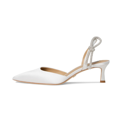 - Discover the captivating allure of the Badgley Mischka Gentry. Designed with a sumptuous silk upper and lined with luxurious leather from the inside out, this slip-on slingback is your go-to for understated elegance. The pointed toe elongates your silhouette, while the kitten heel gives just the right lift for effortless grace. A dazzling stone-embellished bow at the ankle strap adds a twinkle of charm, capturing attention from every angle. Whether you're headed to a wedding, cocktail party, or upscale dinner, the Gentry lets you shine with confidence. The sleek profile and soft leather insole promise comfort with every step, while the sculpted kitten heel ensures day-to-night wearability. Slip into style, sparkle with poise, and let your footwear do all the talking.