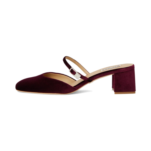 - The Badgley Mischka Valarie pumps offer a chic blend of vintage charm and modern comfort. Crafted in luxurious silk fabric, these slip-on mules feature a slender Mary Jane strap accented with a jewel-encrusted buckle for a touch of glamor. The elegant square toe and cushioned footbed ensure all-day wearability.