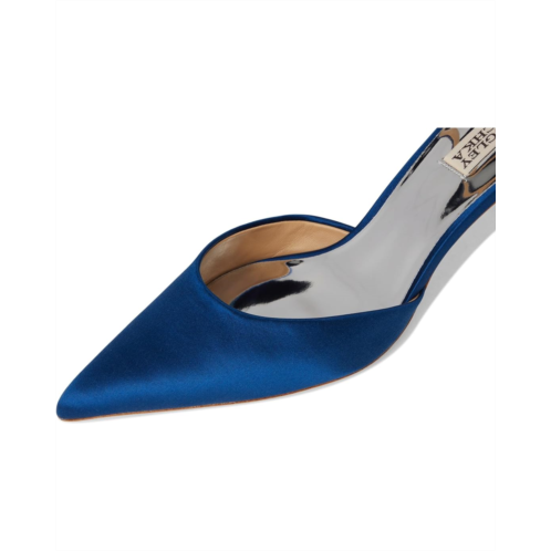 - The Badgley Mischka Autumn is a kitten heel pump with an embellished ankle strap featuring adjustable buckle closure. With a pointed toe silhouette, the sandal has silk upper construction and breathable leather lining for added comfort.