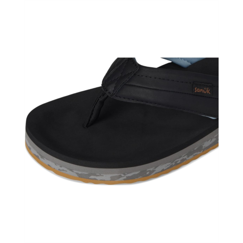 - Sanuk Tiderush, a brand new style featuring a water friendly synthetic leather upper strap, jersey lining on a water friendly EVA foam footbed with contouring to cradle your foot. Crafted from faux leather upper, Jersey lining made with GRS certified recycled polyester, and EVA insole, this pair of footwear features open round toe, padded toe post, and slip-on style. Midsole has elevated stack height for extra comfort.
