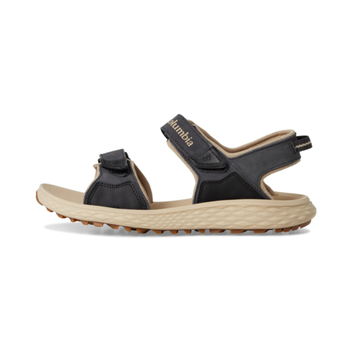 - Inspired by the shape of a pinecone, the Columbia Konos Hiker 2-Strap sandals are the ultimate sandals for your outdoor exploration. An engineered Omni-Max underfoot system delivers superior comfort and traction to tackle any terrain while providing stability to keep you progressing. The suede and synthetic leather upper features two hook-and-loop closure straps for an adjustable fit. They are made of a polyester insole and synthetic rubber lining. These slip-on sandals are designed with a Techlite midsole, a specially designed heel and midfoot aids in creating a stable platform, deflection domes in the forefoot and heel that reduce load impact for better comfort and rebound, and flex grooves in the forefoot that provide flexibility and better push off.